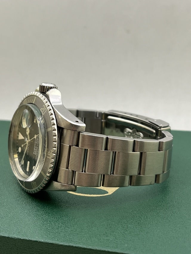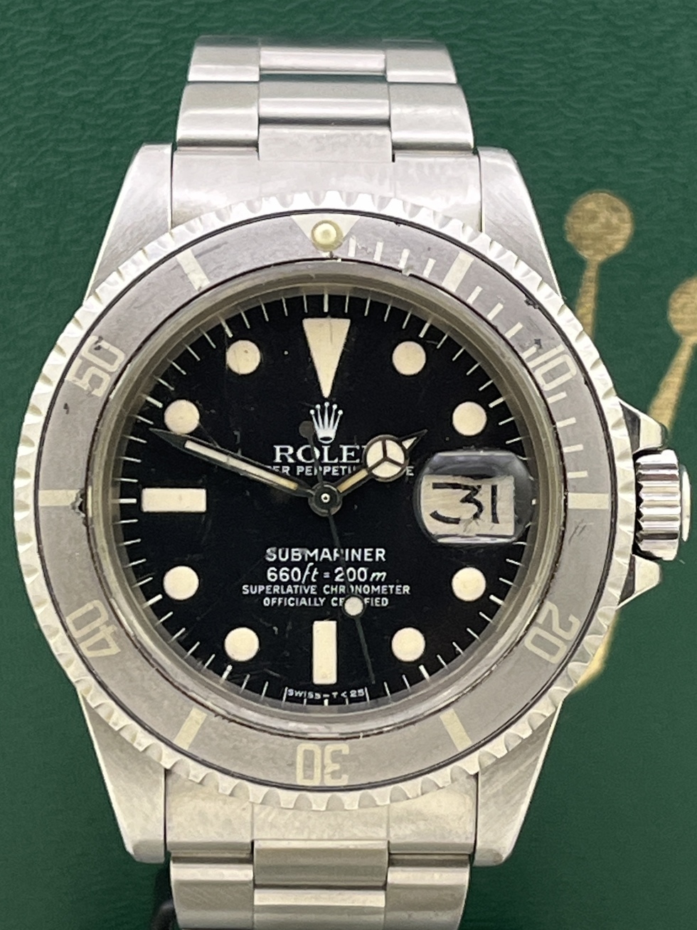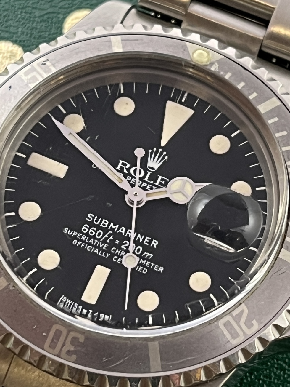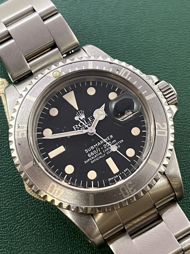 | SUBMARINER Ref.1680 白サブの登場です。 78年頃製造の白SUB MK-1 660ft-200m となります。 風防の傷がございますが 文字盤は夜光ジミも見受けられずコンディション良好です。 夜光は自然に色付いたクリーム色で針もほぼ同色です。 ケースはかなりラグも太くグラマラスなラインを留めており良好なコンディションです。 ベゼルは当時の激しく褪色した所謂ゴーストベゼルとなります。 swissハードブレスRef.93150FF501Bを装備し,伸びも見受けられず良好な状態です。 かなりリーズナブルで魅力的な白サブMK-1ダイアル!! 是非この機会にコレクションに加えてみてはいかがでしょうか? |
